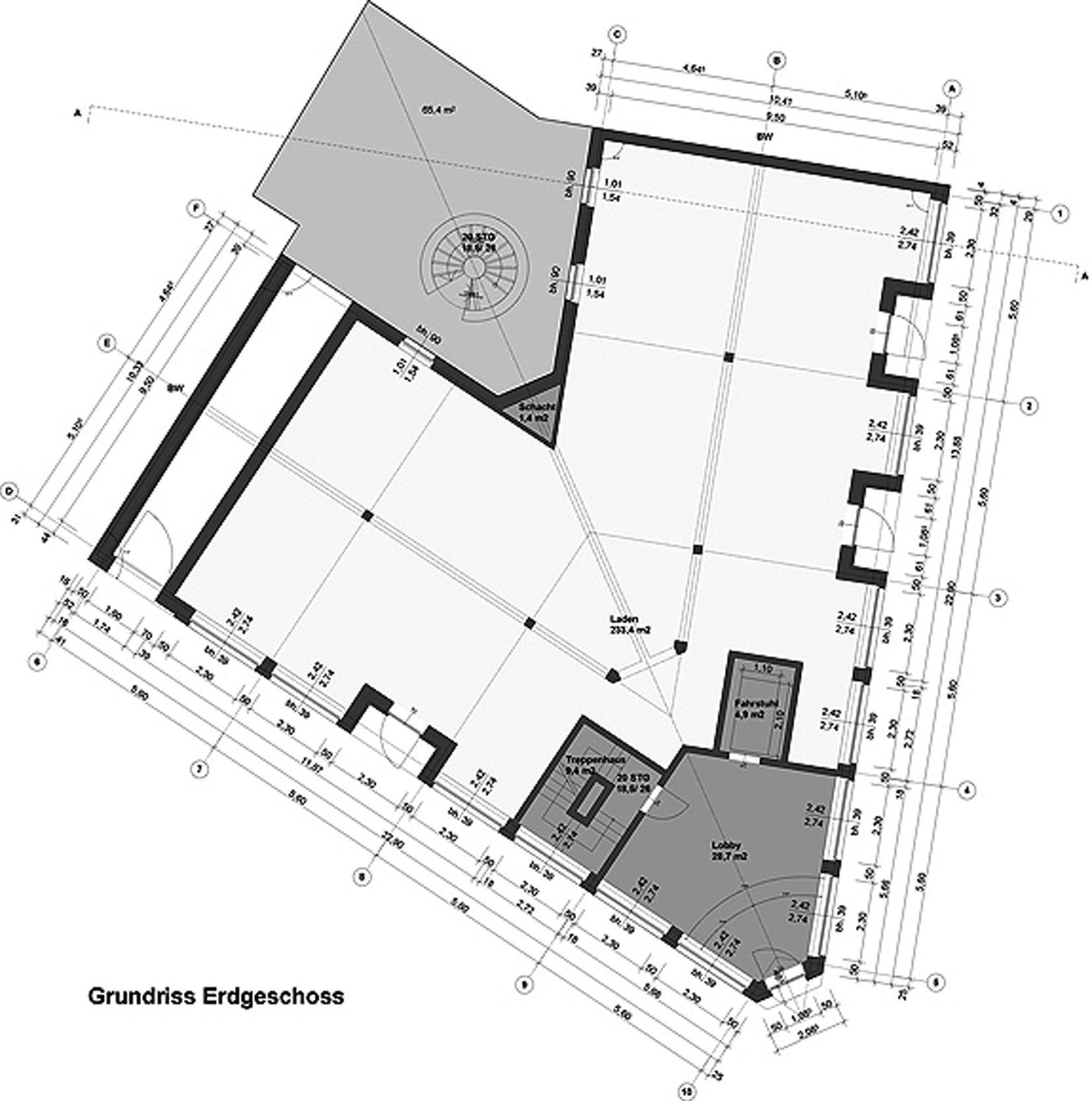 Neubau mit Vorbild Flat-Iron-Building - Geschäftshaus mit Penthouse als Eckbebauung